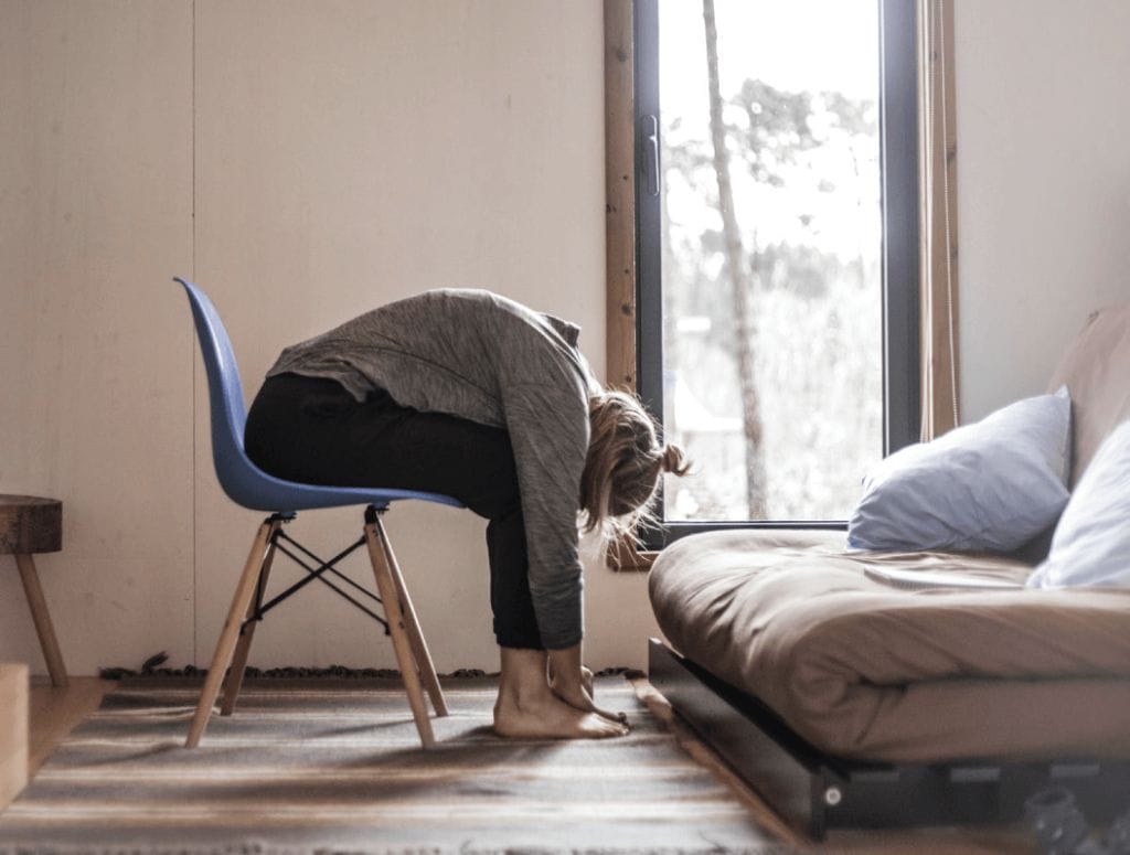 - Stuhllehne mit beiden Händen festhalten um Rückbeuge zu verstärken