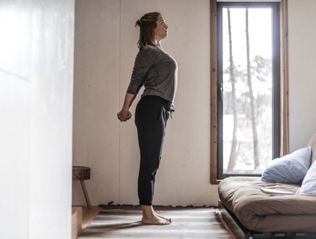 - Hände hinter Rücken verschränken